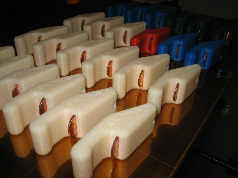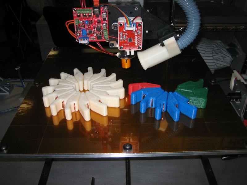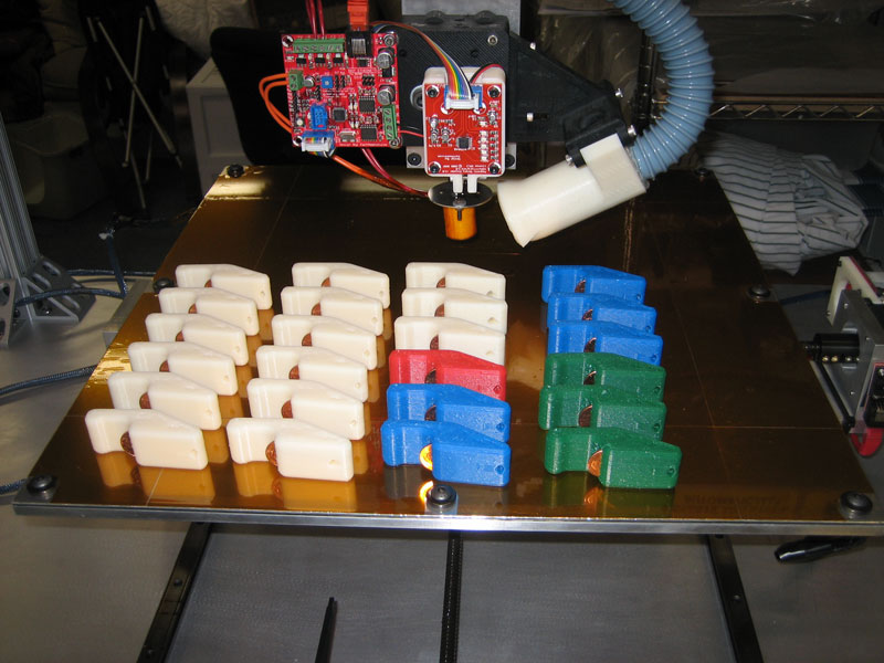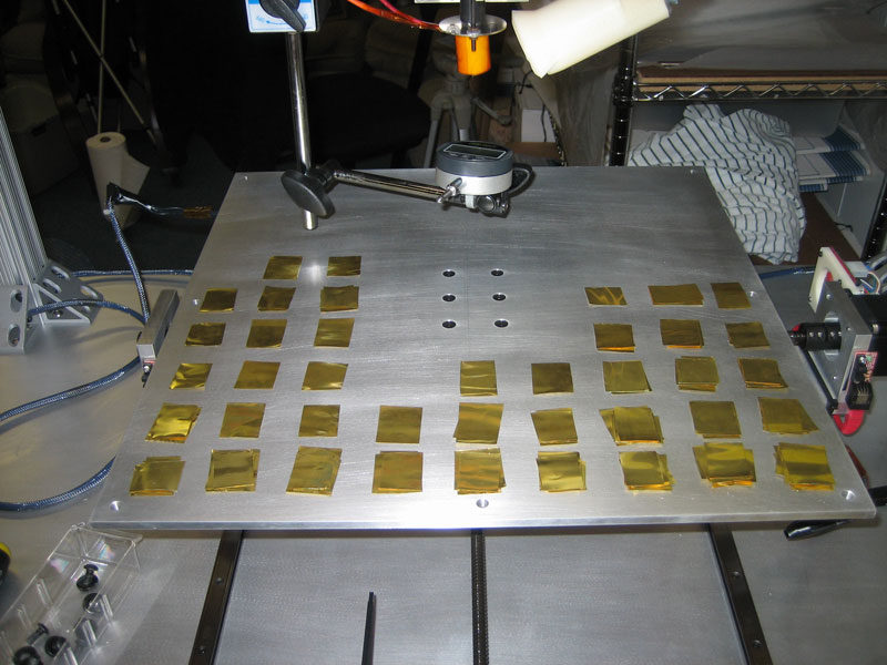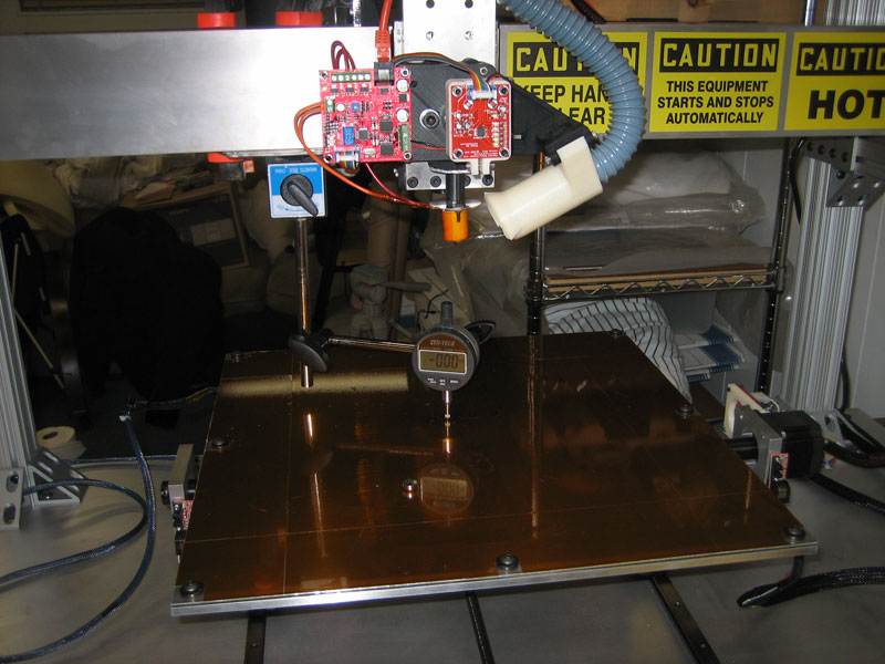 Since all my machine part surfaces are not machined flat, the build base isn’t perfectly square to the Z axis. This is necessary when trying to print big parts because the layers are so thin. I was aiming for holding a +/-.10mm tolerance across the build base. I measured the initial plate (when heated of course) in a 50mm grid and then placed brass shims where necessary between the build base and the build plate to make it level.