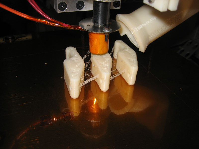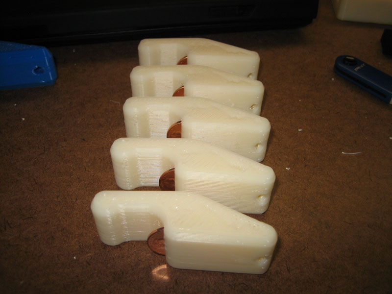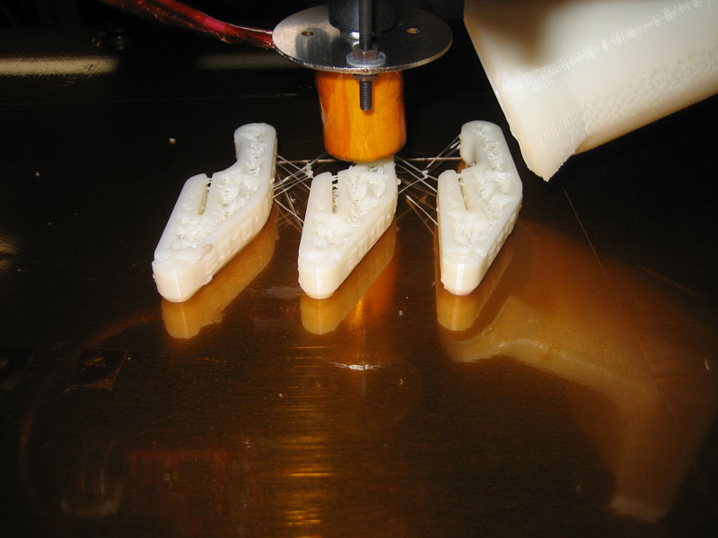 Time for Mass production of bottle openers, Here is a test of printing three at a time, with the multiply setting in Skeinforge.