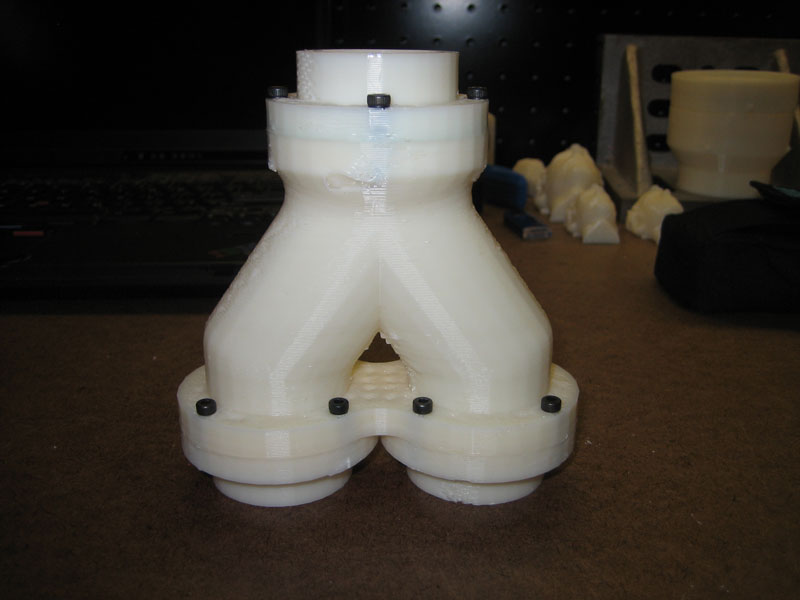 The above image is the finished Y-splitter which came out quite nicely. I used a 3.4mm wall thickness which basically gave me a quadruple path wall thickness.